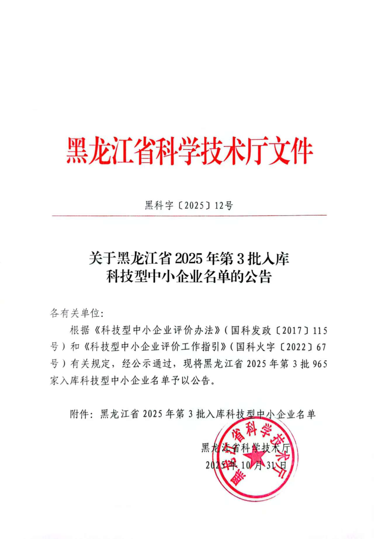 黑龙江省2025年第3批入库科技型中小企业名单公告正文.jpg PICTURE