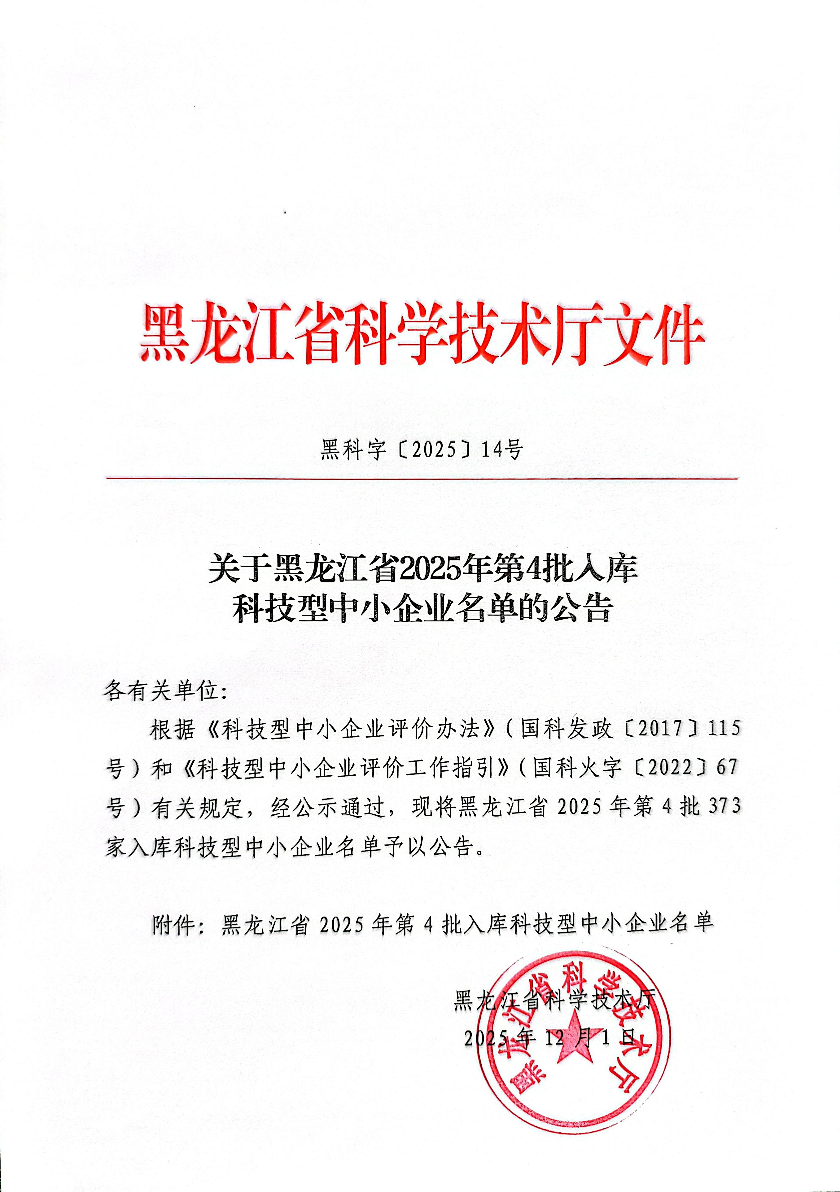 黑龙江省2025年第4批入库科技型中小企业名单公告正文.jpg PICTURE