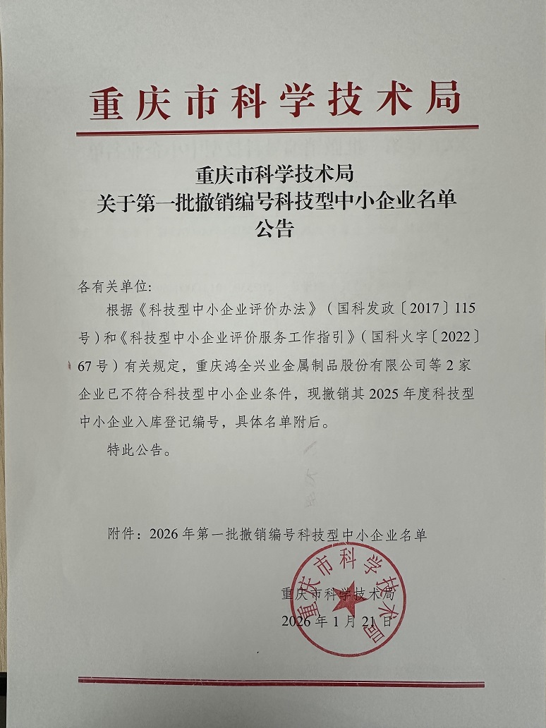 重庆市2026年第1批撤销编号科技型中小企业名单.pdf FILE