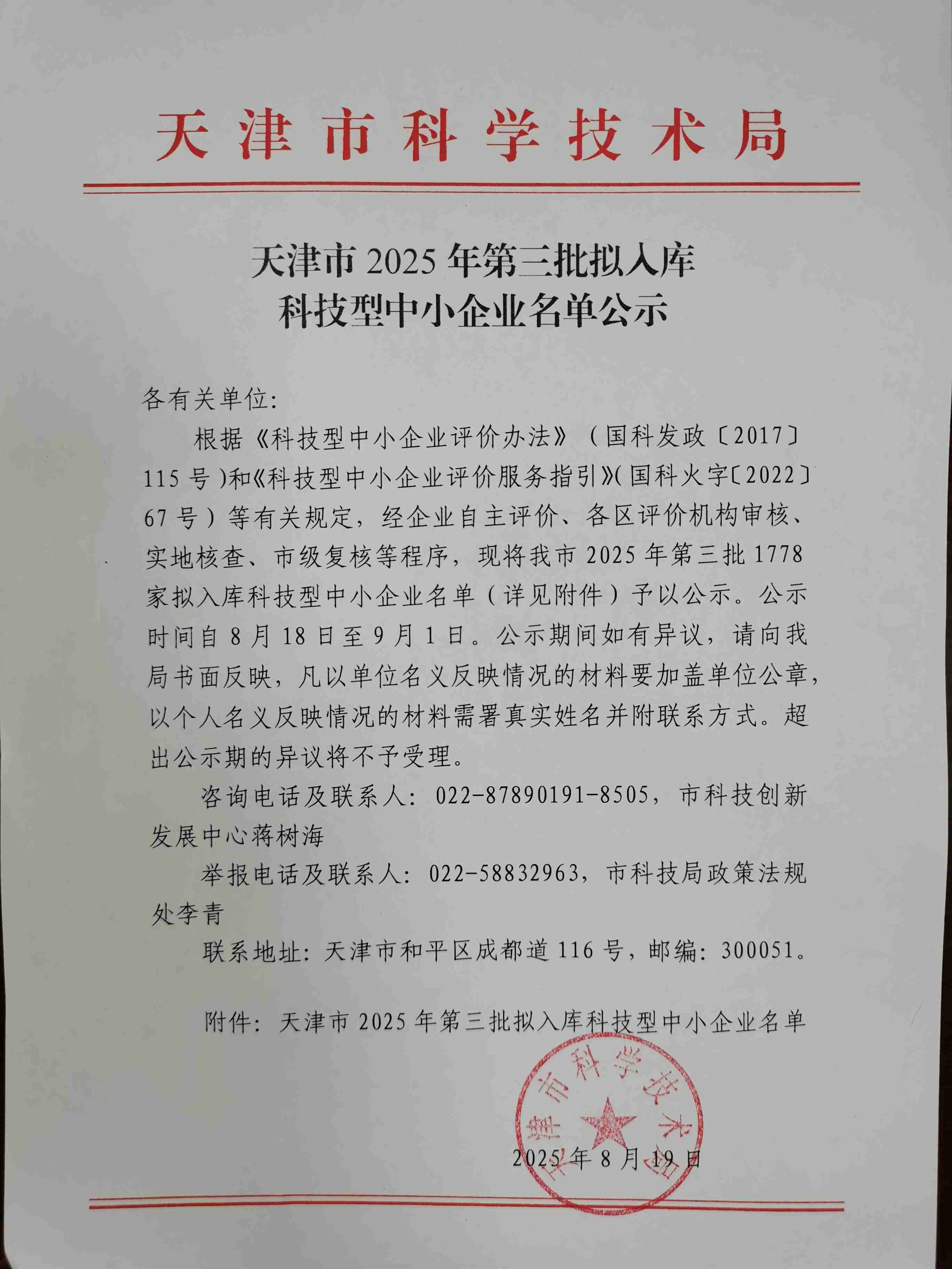 天津市2025年第3批拟入库科技型中小企业名单公示正文.jpg PICTURE