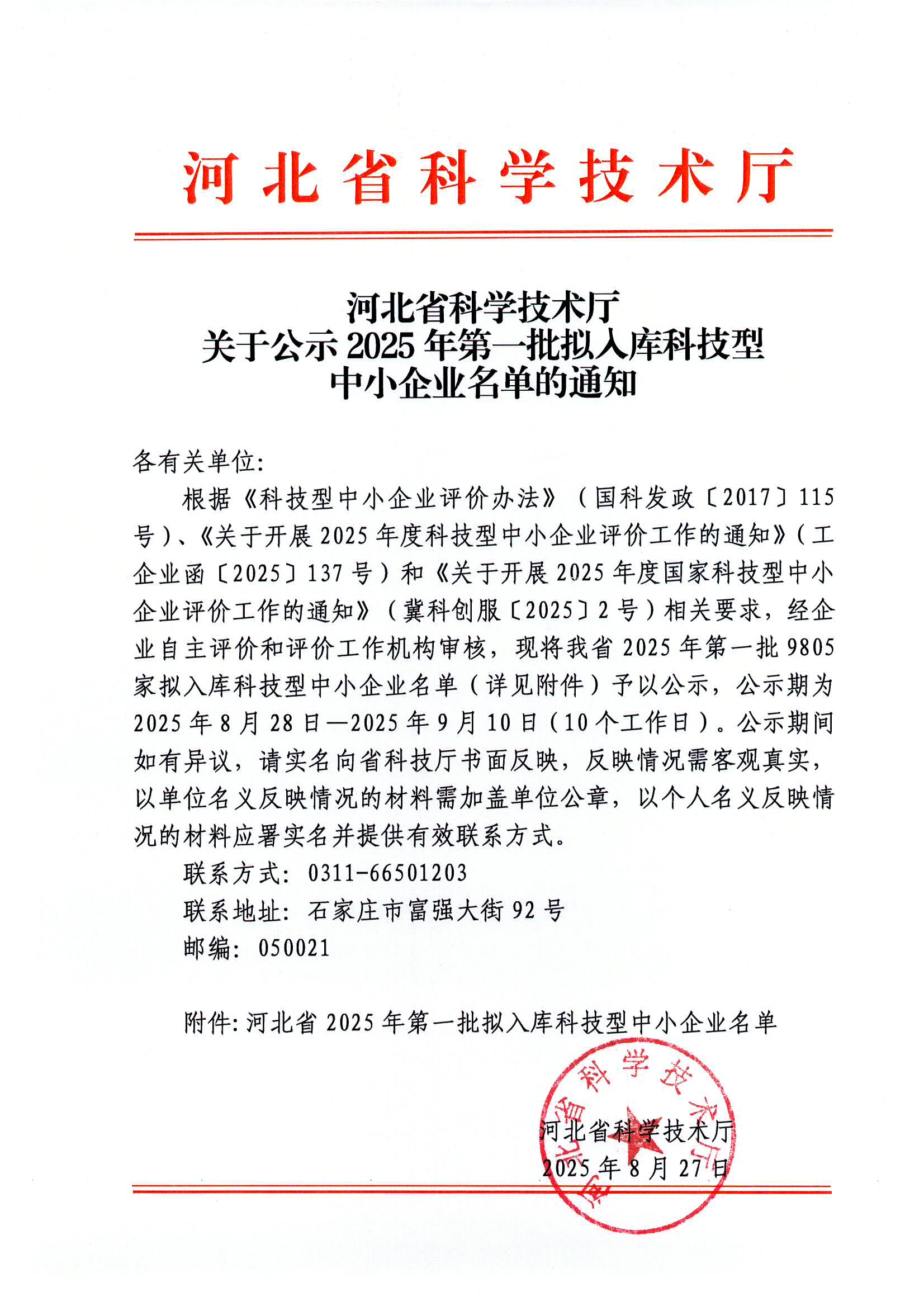 河北省2025年第1批拟入库科技型中小企业名单公示正文.jpg PICTURE