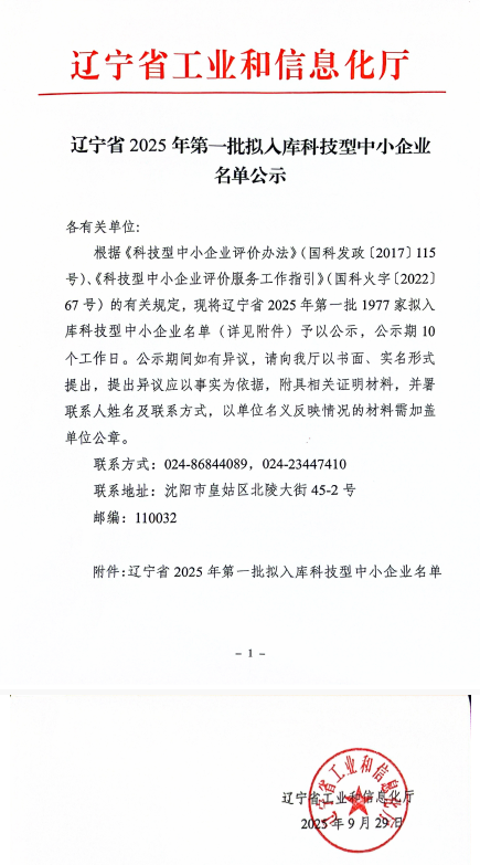 辽宁省2025年第1批拟入库科技型中小企业名单公示正文.jpg PICTURE