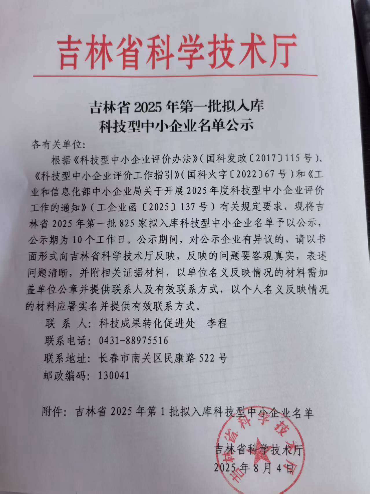 吉林省2025年第1批拟入库科技型中小企业名单公示正文.jpg PICTURE