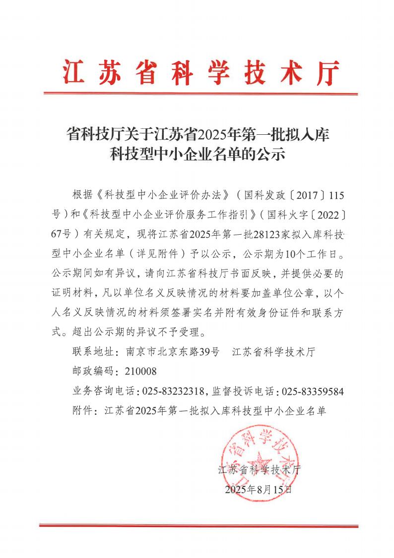江苏省2025年第1批拟入库科技型中小企业名单公示正文.jpg PICTURE