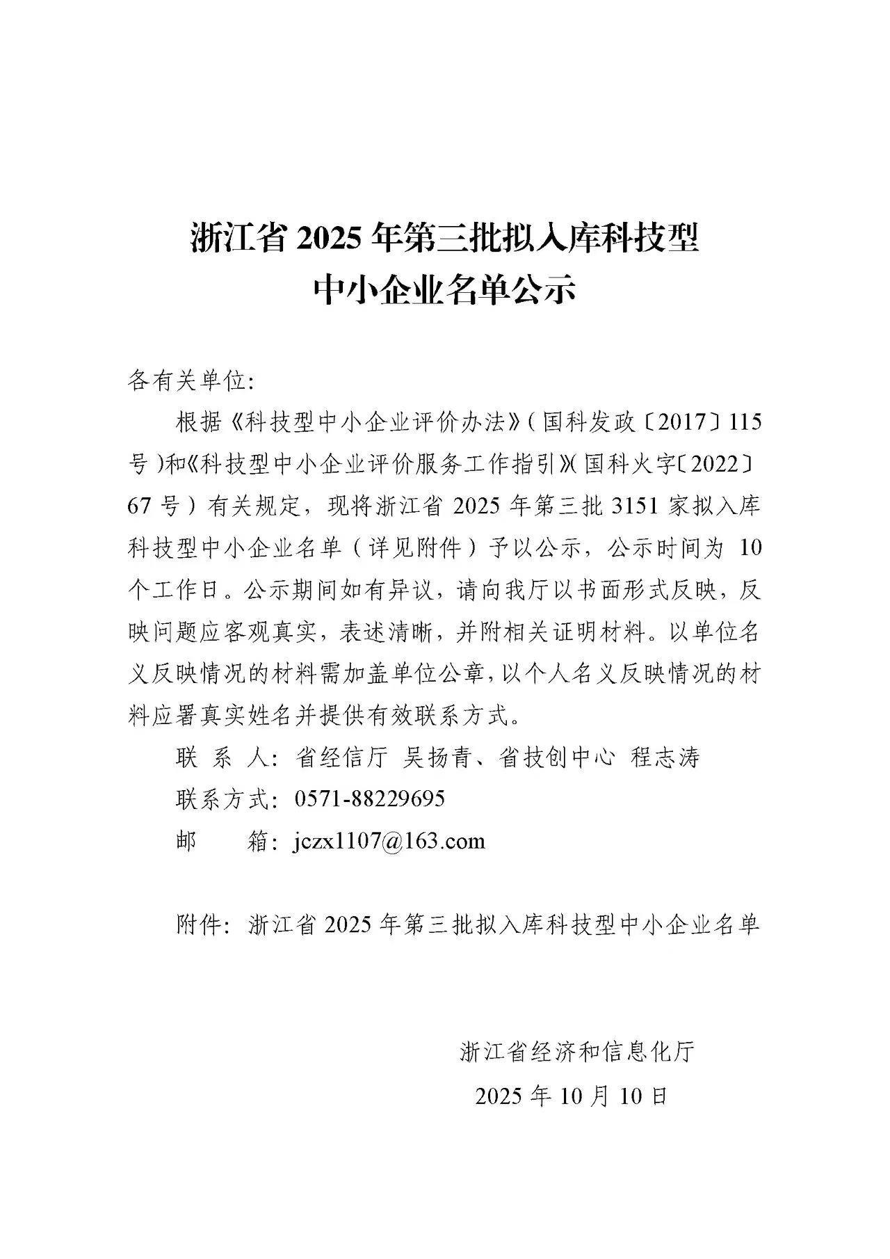 浙江省2025年第3批拟入库科技型中小企业名单公示正文.jpg PICTURE