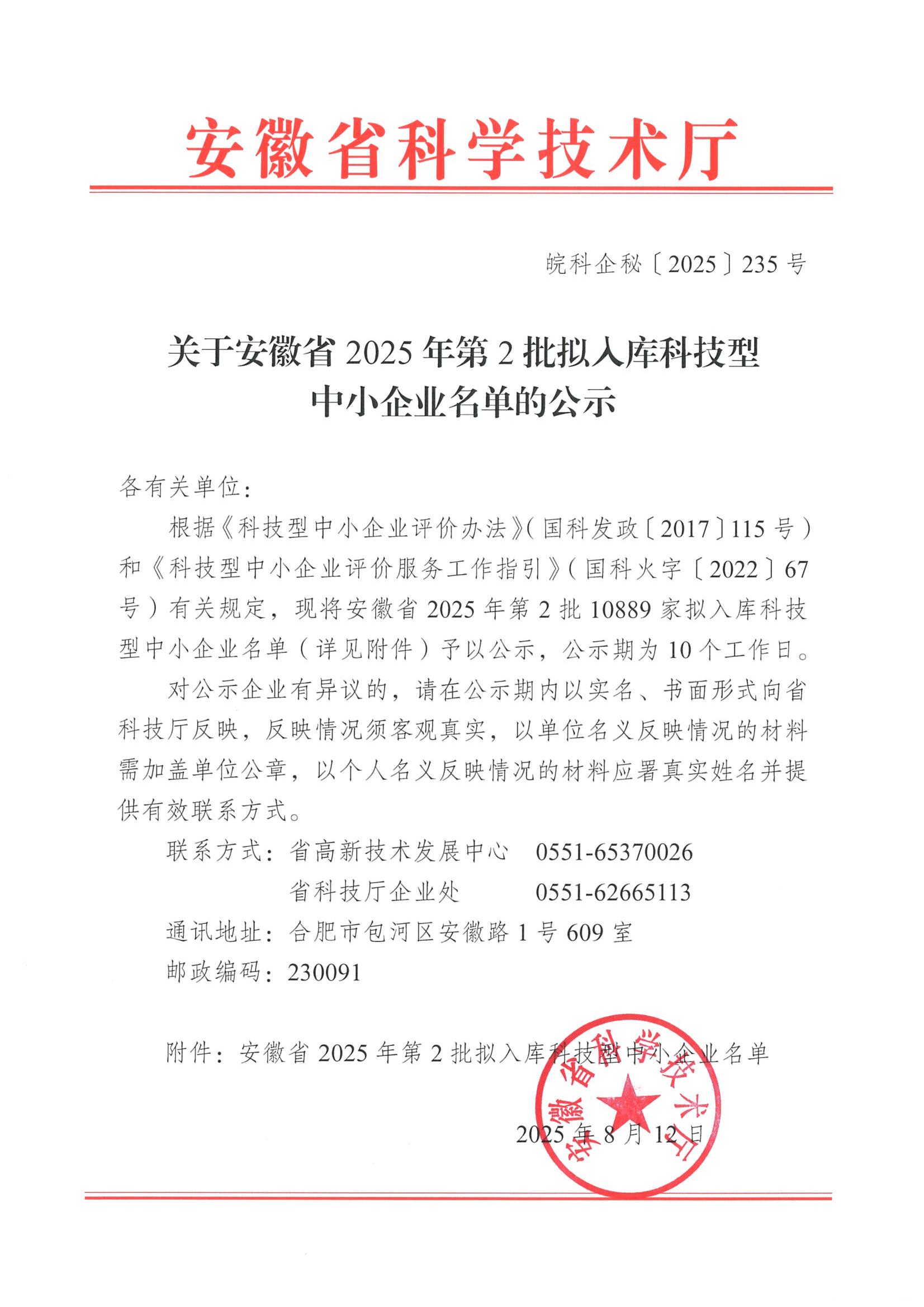 安徽省2025年第2批拟入库科技型中小企业名单公示正文.jpg PICTURE
