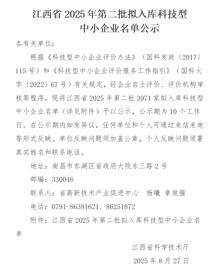 江西省2025年第2批拟入库科技型中小企业名单公示正文.jpg PICTURE
