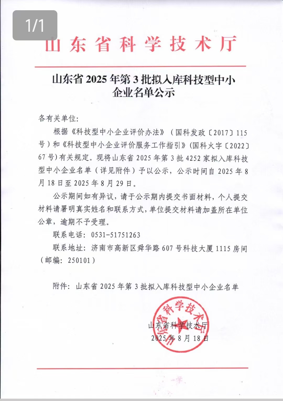 山东省2025年第3批拟入库科技型中小企业名单公示正文.jpg PICTURE