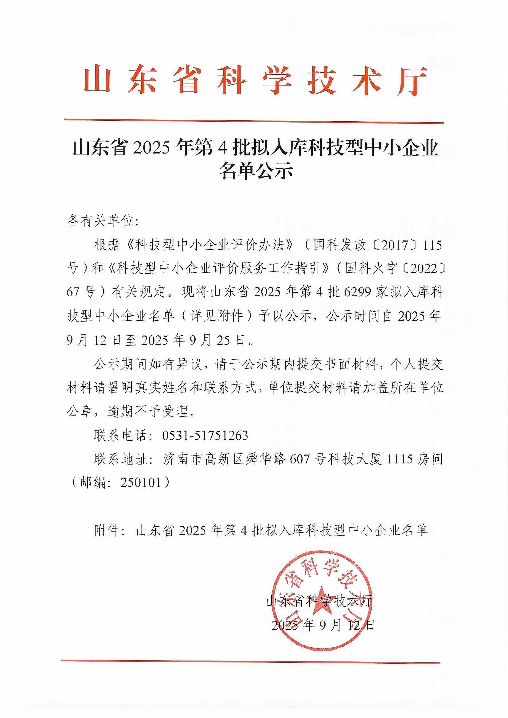 山东省2025年第4批拟入库科技型中小企业名单公示正文.jpg PICTURE