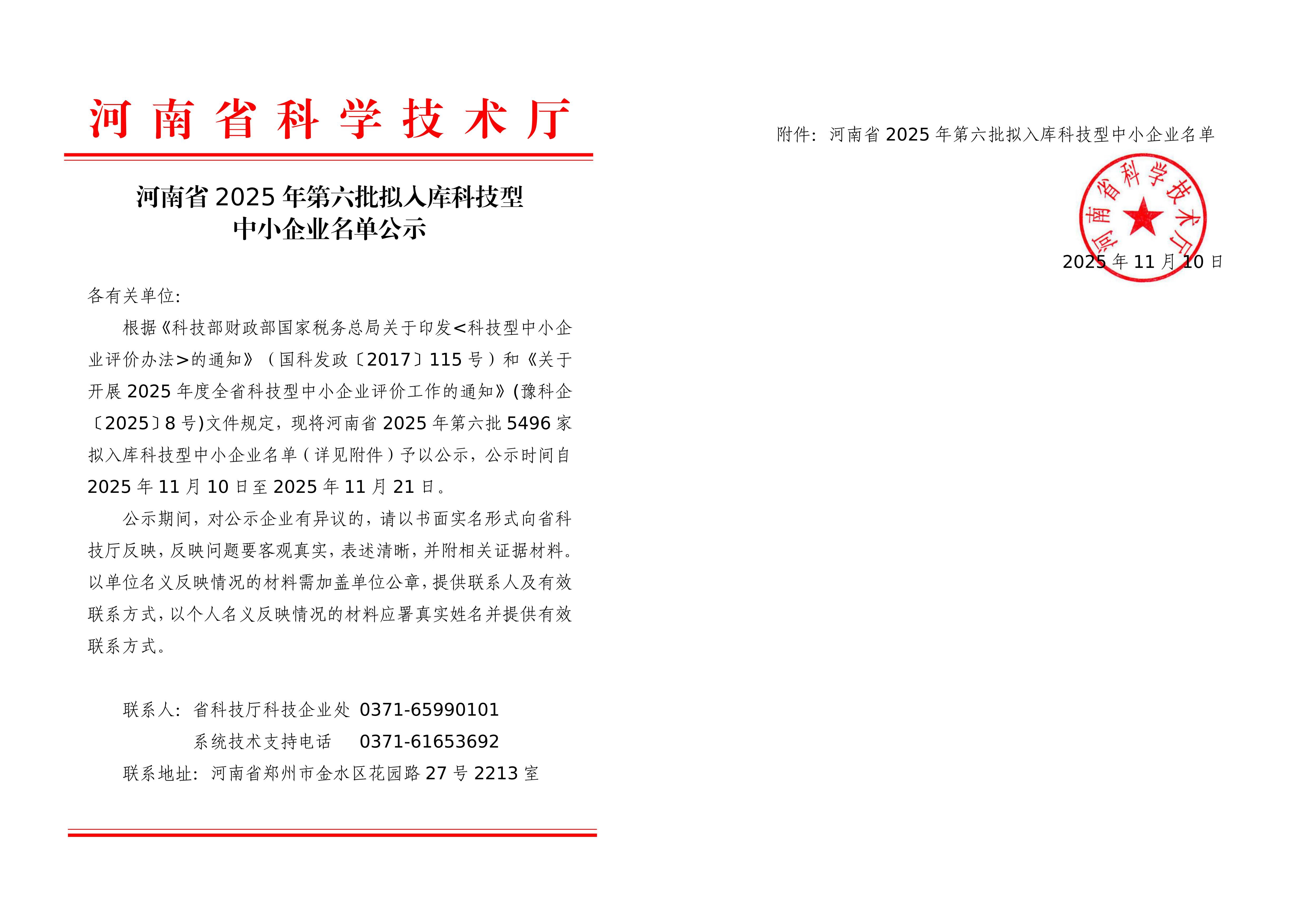 河南省2025年第6批拟入库科技型中小企业名单公示正文.jpg PICTURE