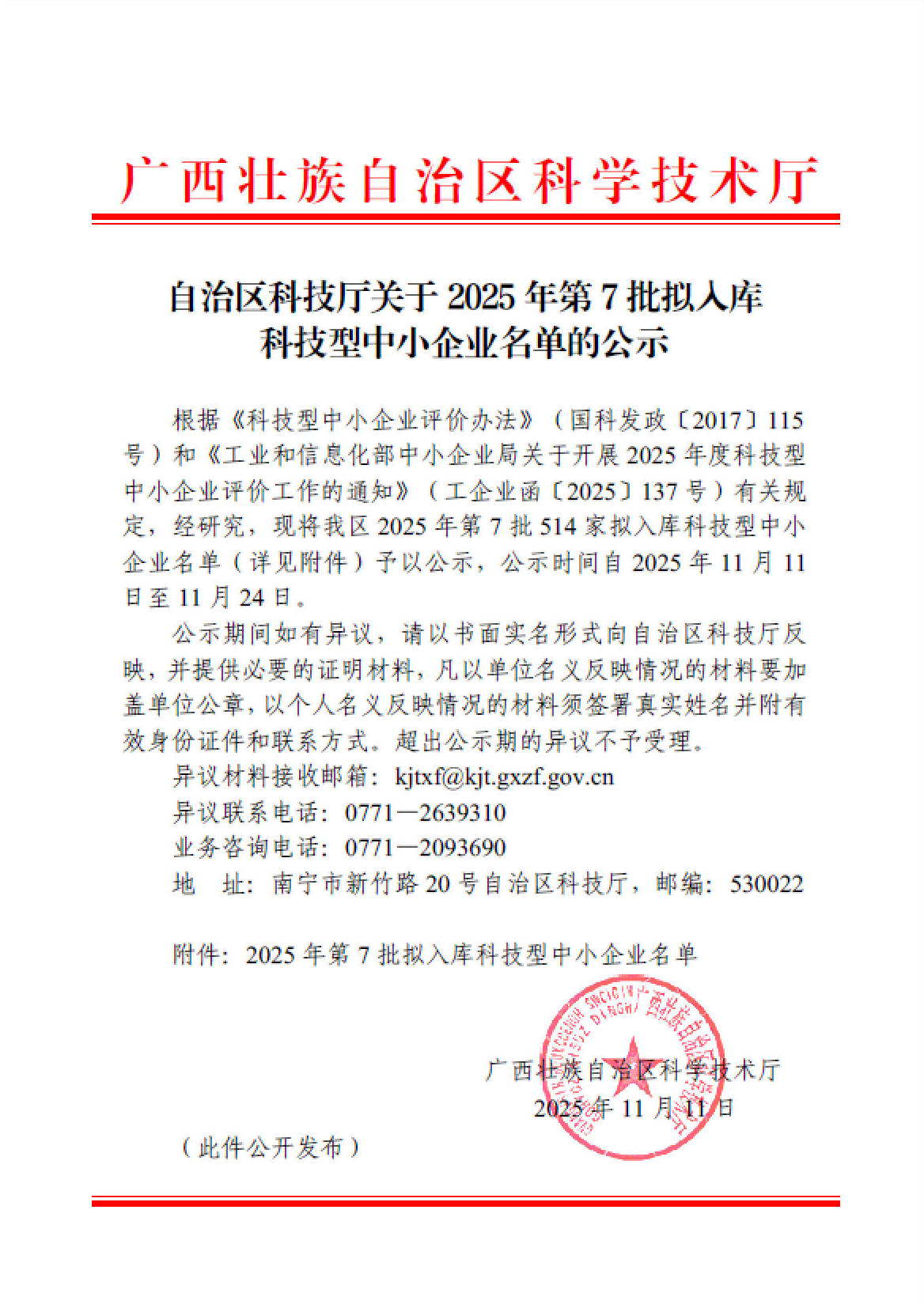 广西壮族自治区2025年第7批拟入库科技型中小企业名单公示正文.jpg PICTURE