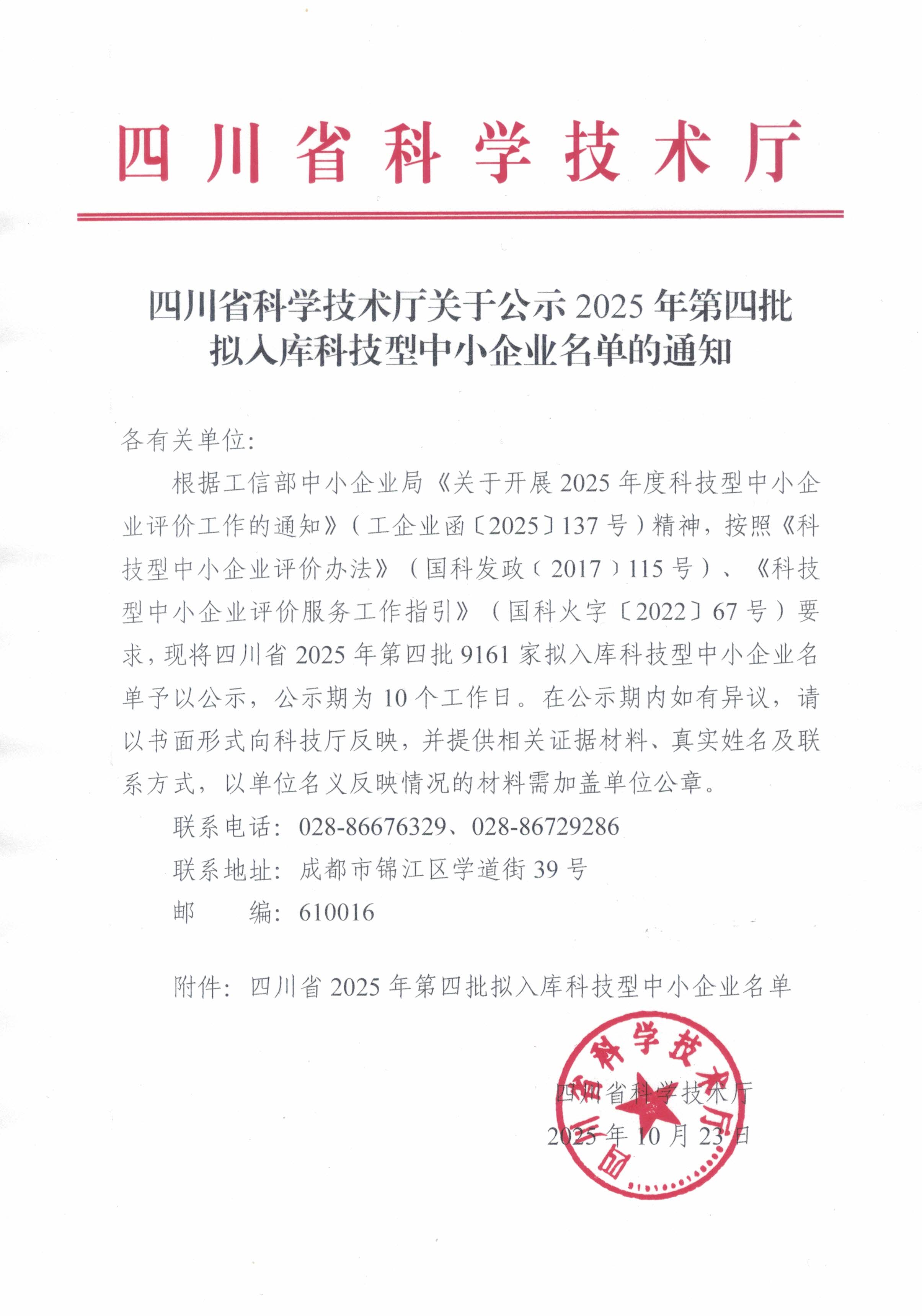 四川省2025年第4批拟入库科技型中小企业名单公示正文.jpg PICTURE