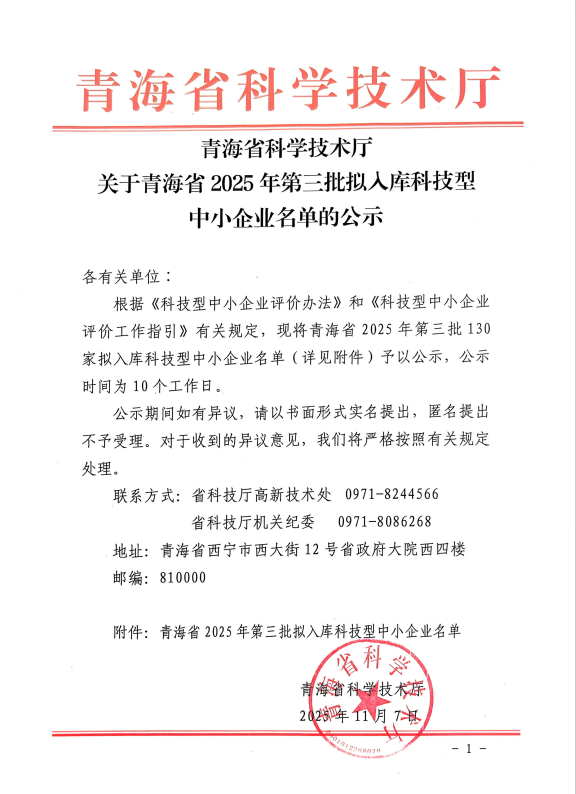 青海省2025年第3批拟入库科技型中小企业名单公示正文.jpg PICTURE
