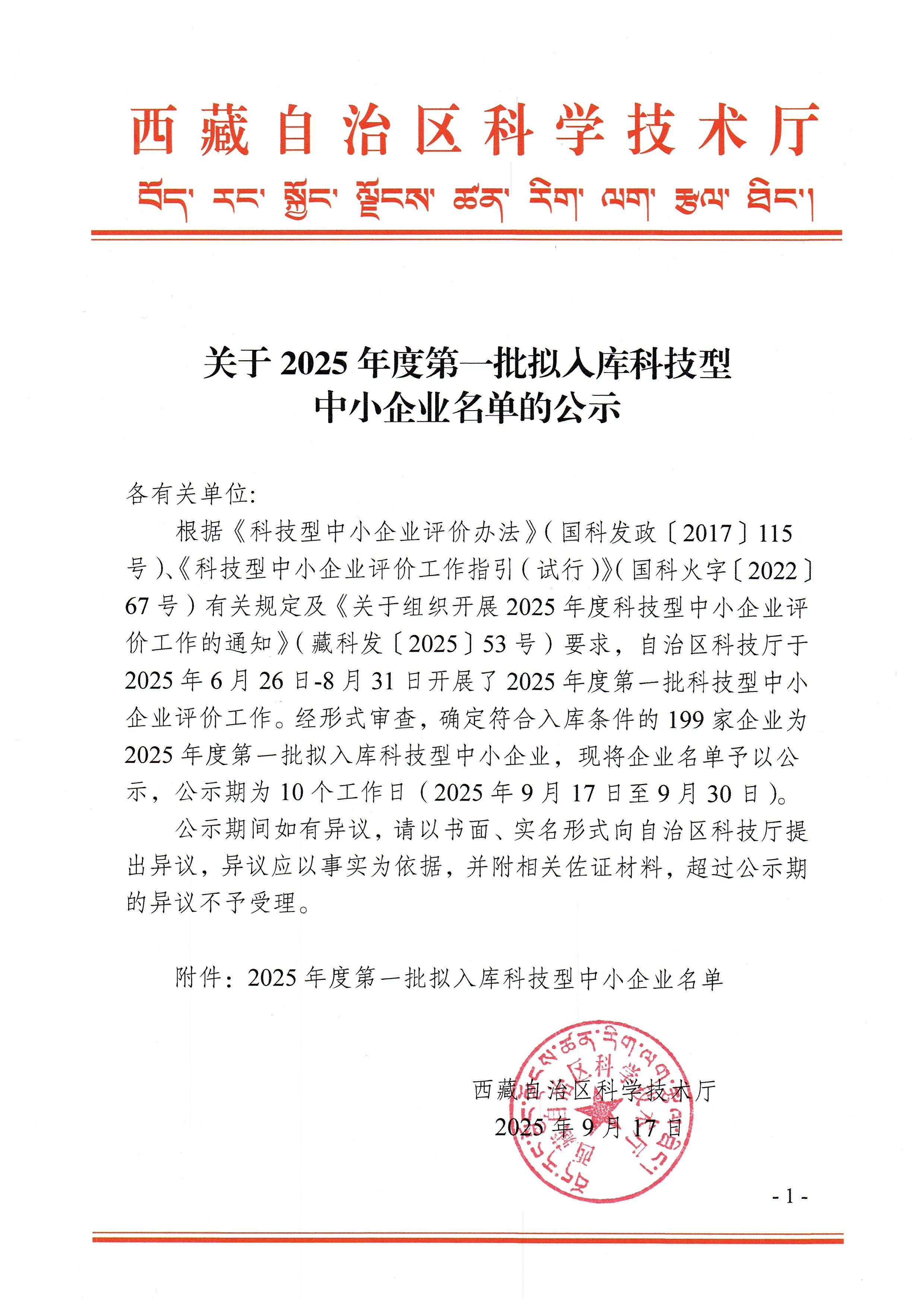 西藏自治区2025年第1批拟入库科技型中小企业名单公示正文.jpg PICTURE