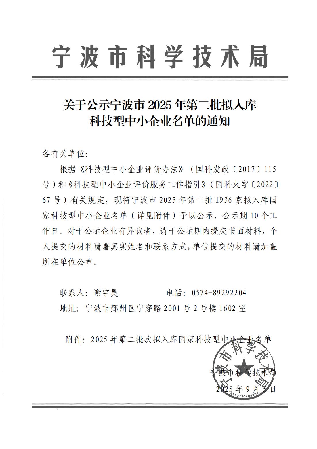 宁波市2025年第2批拟入库科技型中小企业名单公示正文.jpg PICTURE