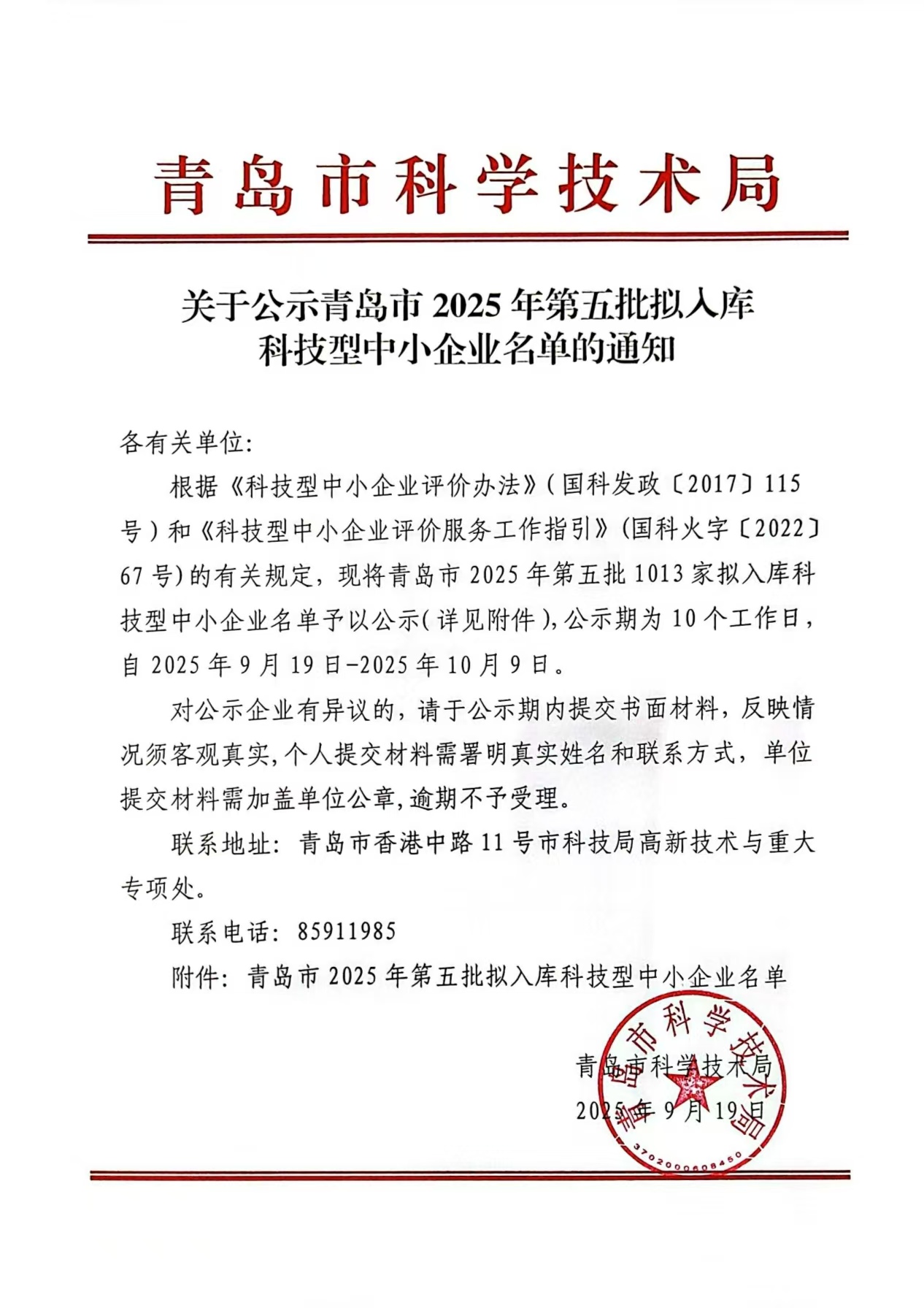 青岛市2025年第5批拟入库科技型中小企业名单公示正文.jpg PICTURE