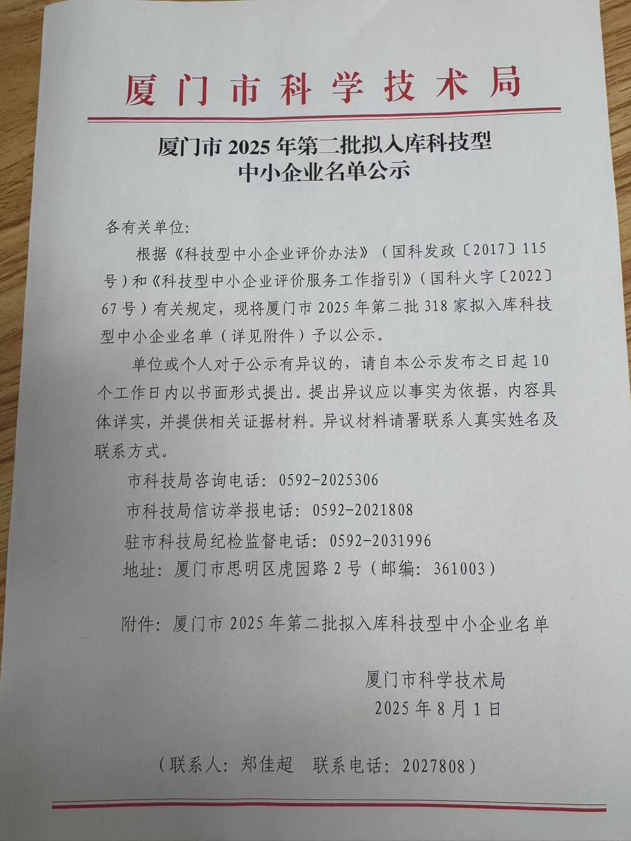 厦门市2025年第2批拟入库科技型中小企业名单公示正文.jpg PICTURE
