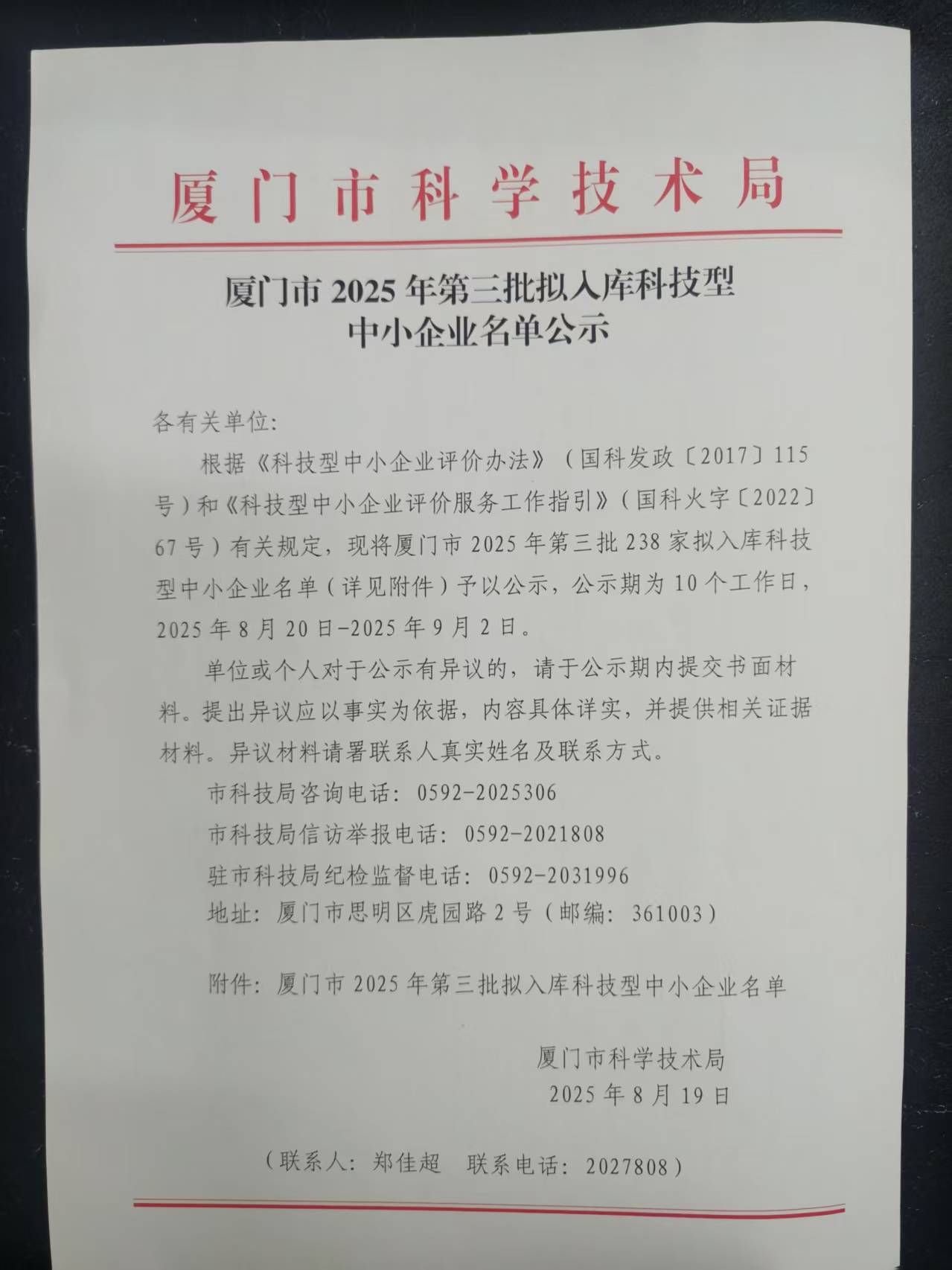 厦门市2025年第3批拟入库科技型中小企业名单公示正文.jpg PICTURE
